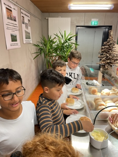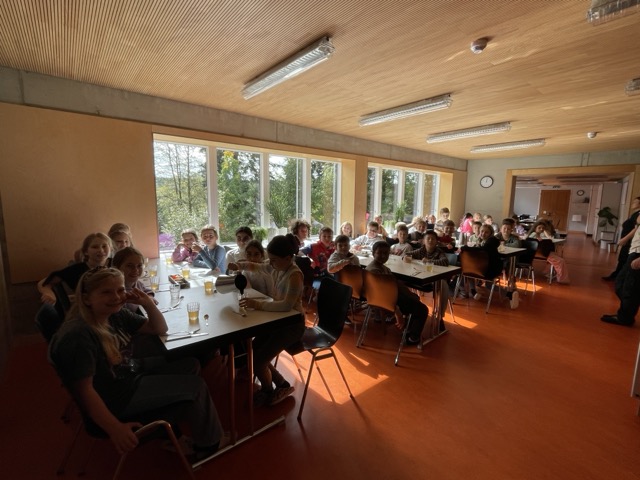 Rechtzeitig um 12:00 Uhr waren beide Klassen zurück und konnten im Speisesaal ihr Mittagessen einnehmen.